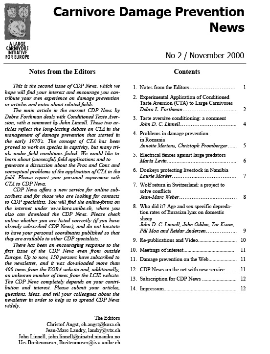 Experimental Application of Conditioned Taste Aversion (CTA) to Large Carnivores
